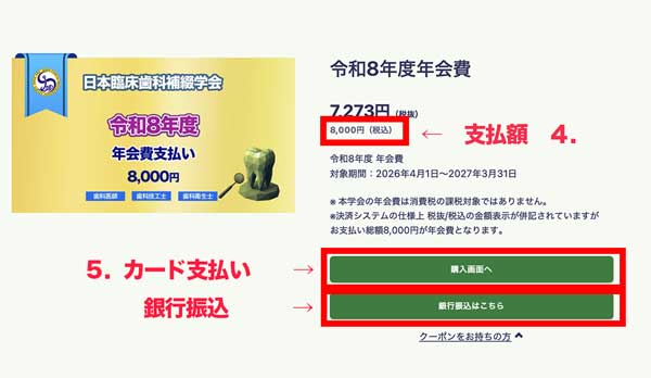 年会費などのお支払いはこちらから行っていただきます。