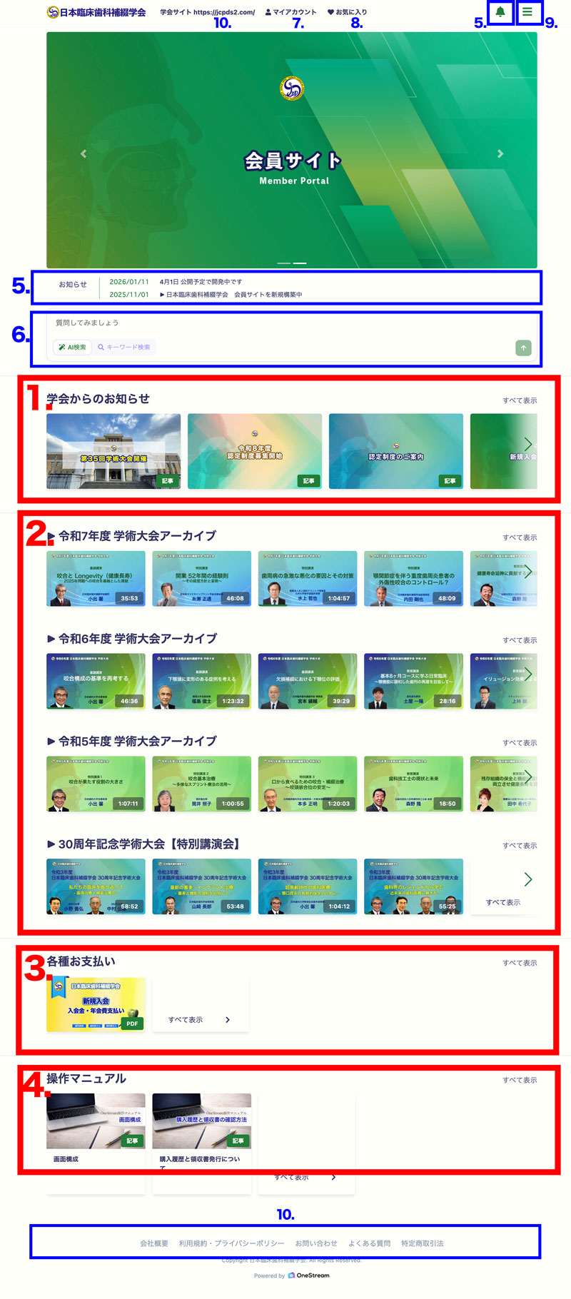 日本臨床歯科補綴学会の会員サイトの基本操作方法 (OneStream) をわかりやすくまとめたものです。